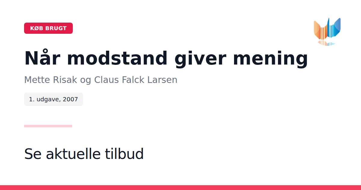Når modstand giver mening er en skarp og kritisk udforskning af organisation og ledelse i den offentlige sektor. Universitetsdirektør Mette Risak og lægechef Claus Falck Larsen trækker på deres egne erfaringer fra et konfliktfyldt og uforudsigeligt organisatorisk landskab, hvor lederarbejde ofte præges af politisk spil og følelsesmæssige udfordringer. Bogen stiller indsigtsfulde spørgsmål om, hvorvidt harmoni og fordragelighed virkelig er de bedste mål for god offentlig ledelse. Risak og Falck Larsen argumenterer for, at denne stræben kan skjule en dybere virkelighed, hvor realiteterne ikke altid stemmer overens med de overfladiske idealer. Med sit kritiske blik bidrager bogen væsentligt til debatten om de vilkår, den offentlige leder opererer under.