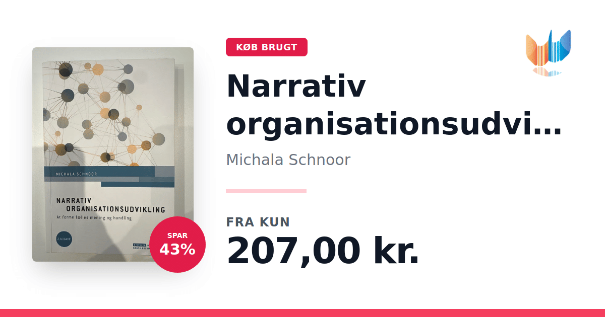 "Narrativ organisationsudvikling" af Michala Schnoor sætter fokus på fortællingers evne til at skabe virkelighed i organisationer og belyser, hvordan narrative elementer påvirker både det sociale miljø og den organisatoriske resultatskabelse. Bogen er udformet i et letforståeligt og praksisnært format, hvor fortællinger og narrative metoder sættes i centrum for at skabe læring og udvikling. I denne anden udgave er der desuden tilføjet et nyt kapitel, der dykker ned i strategisk forandring og udvikling med et særligt narrativt perspektiv. Gennem inspirerende casehistorier, interviews med narrative praktikere og en bred vifte af konkrete metoder, værktøjer og modeller, får læseren redskaberne til at anvende narrative idéer i praksis. Bogen henvender sig til ledere og konsulenter, der ønsker at fremme læring og udvikling i organisationer. Ligeledes kan medarbejdere, tillidsrepræsentanter, undervisere og studerende med interesse for organisationsudvikling finde værdi i de narrative tilgange, der præsenteres i værket.