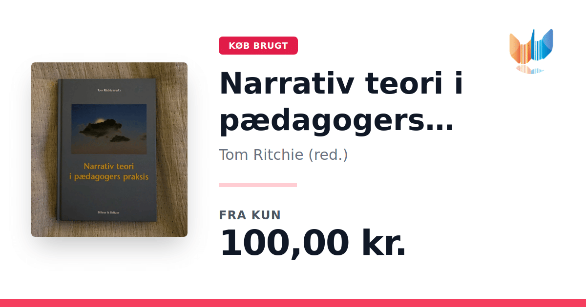 Lige nu kan du købe "Narrativ teori i pædagogers praksis" af Tom Ritchie (red.) til kun 100,00 kr. Bogen du ser her er brugt, og i god stand. Vi har i øjeblikket kun et enkelt eksemplar til salg af "Narrativ teori i pædagogers praksis", så slå til mens du kan!