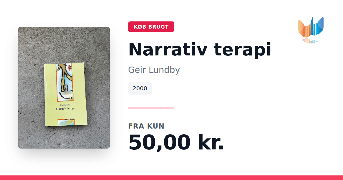 Lige nu kan du købe "Narrativ terapi" af Geir Lundby til kun 50,00 kr. Bogen du ser her er brugt, og i perfekt stand. Vi har i øjeblikket 2 eksemplarer til salg af "Narrativ terapi", så husk at se de forskellige udgaver.