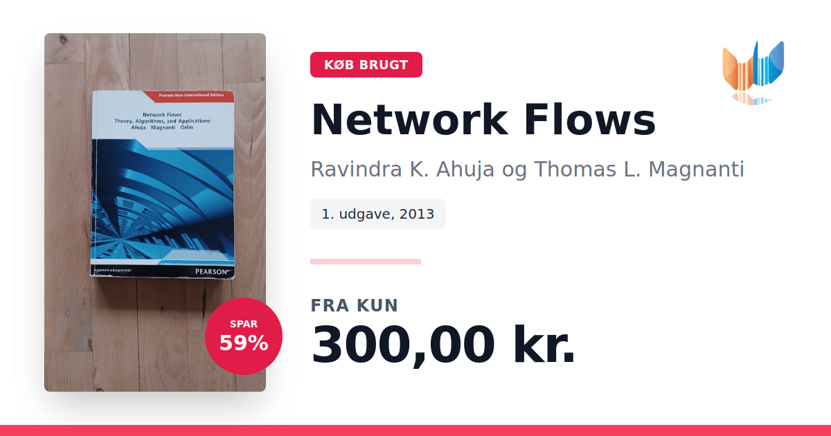 Lige nu kan du købe "Network Flows" af Ravindra K. Ahuja og Thomas L. Magnanti til kun 300,00 kr. Du sparer hele 59% af nyprisen! Bogen du ser her er brugt, og i god stand. Vi har i øjeblikket kun et enkelt eksemplar til salg af "Network Flows", så slå til mens du kan!