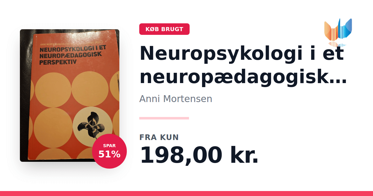 Lige nu kan du købe "Neuropsykologi i et neuropædagogisk perspektiv" af Anni Mortensen til kun 198,00 kr. Du sparer hele 51% af nyprisen! Bogen du ser her er brugt, og i god stand. Vi har i øjeblikket kun et enkelt eksemplar til salg af "Neuropsykologi i et neuropædagogisk perspektiv", så slå til mens du kan!