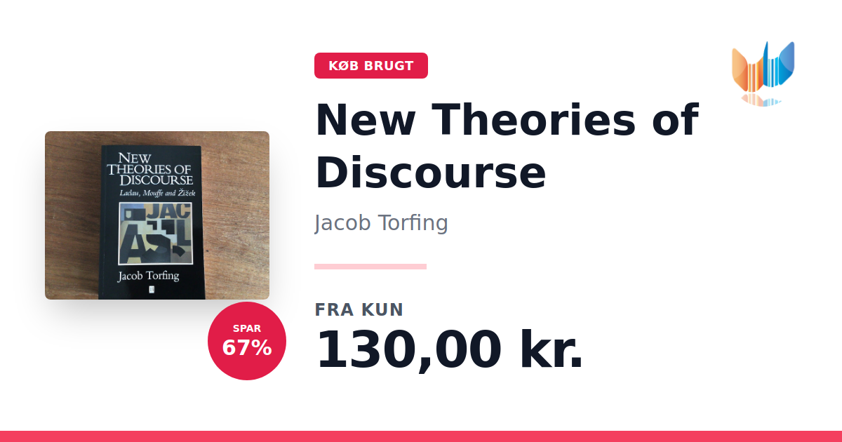 Lige nu kan du købe "New Theories of Discourse" af Jacob Torfing til kun 130,00 kr. Du sparer hele 67% af nyprisen! Bogen du ser her er brugt, og i perfekt stand. Vi har i øjeblikket kun et enkelt eksemplar til salg af "New Theories of Discourse", så slå til mens du kan!