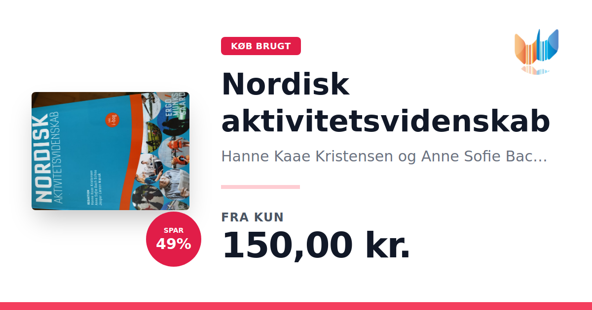 Lige nu kan du købe "Nordisk aktivitetsvidenskab" af Hanne Kaae Kristensen og Anne Sofie Bach Schou til kun 150,00 kr. Du sparer hele 49% af nyprisen! Bogen du ser her er brugt, og i god stand. Vi har i øjeblikket 2 eksemplarer til salg af "Nordisk aktivitetsvidenskab", så husk at se de forskellige udgaver.