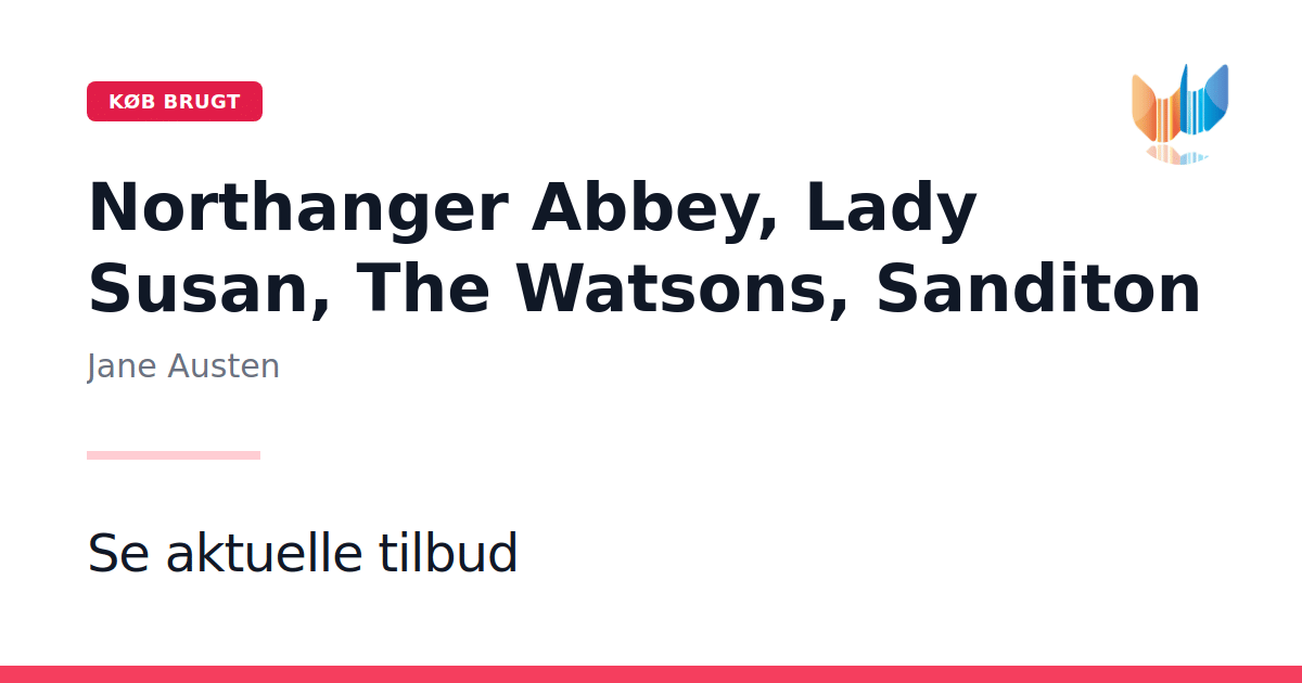 Northanger Abbey, Lady Susan, The Watsons og Sanditon er samlet i denne udgave redigeret af John Davie og James Kinsley for Oxford University Press. Førsteudgave 2008, Paperback, 432 sider. I Northanger Abbey møder vi den unge Catherine Morland: naiv, ubekymret og passioneret læser af gyselige romaner. Gothic-novelles vilde forestillinger om tyranniske fædre og skumle skurke driver hende ud i pikante misforståelser, mens Jane Austen mesterligt trækker grænsen mellem fiktionens dramatiske spænding og hverdagslivets varme komik. Samlingsbindet rummer desuden Lady Susan, The Watsons og det ufuldendte Sanditon. Disse korte fortællinger indrammer Austens karriere fra de tidlige, uortodokse breve og dialoger til hendes sidste, visionære projekt om en kystby i udvikling. Med fyldige noter og indledninger af førende Austen-forskere får læseren et sjældent indblik i forfatterens kreative processer og betydning for den engelske roman.