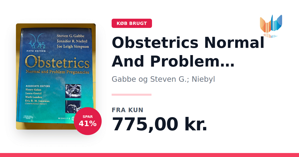 Lige nu kan du købe "Obstetrics Normal And Problem Pregnancies" af Gabbe og Steven G.; Niebyl til kun 775,00 kr. Du sparer hele 41% af nyprisen! Bogen du ser her er brugt, og i perfekt stand. Vi har i øjeblikket kun et enkelt eksemplar til salg af "Obstetrics Normal And Problem Pregnancies", så slå til mens du kan!