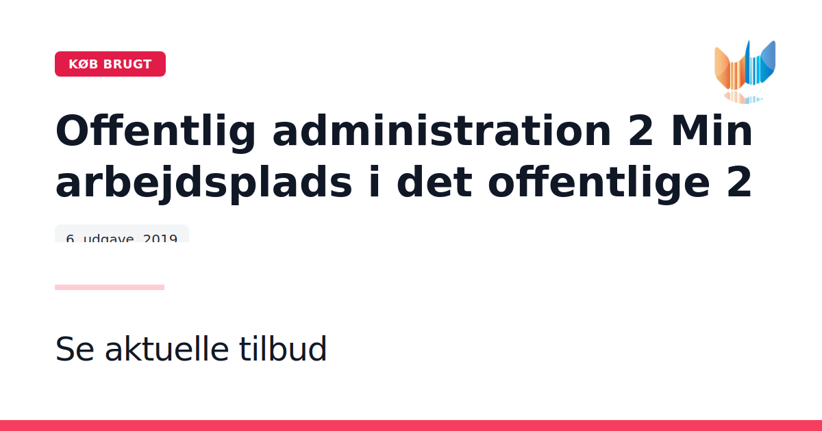 Offentlig administration 2 Min arbejdsplads i det offentlige 2 er den 6. udgave udgivet af Forlaget '94 i 2019, og udgør et centralt redskab for studerende inden for offentlig administration. Bogen tilbyder en grundig introduktion til de elementer, der karakteriserer den moderne offentlige arbejdsplads. Som det andet bind i en serie på tre, er værket udviklet med henblik på at understøtte uddannelsen på landets erhvervsskoler. Med sin fokuserede tilgang bidrager bogen til en nuanceret forståelse af de organisatoriske og ledelsesmæssige aspekter, der gør den offentlige sektor til et dynamisk og komplekst felt.