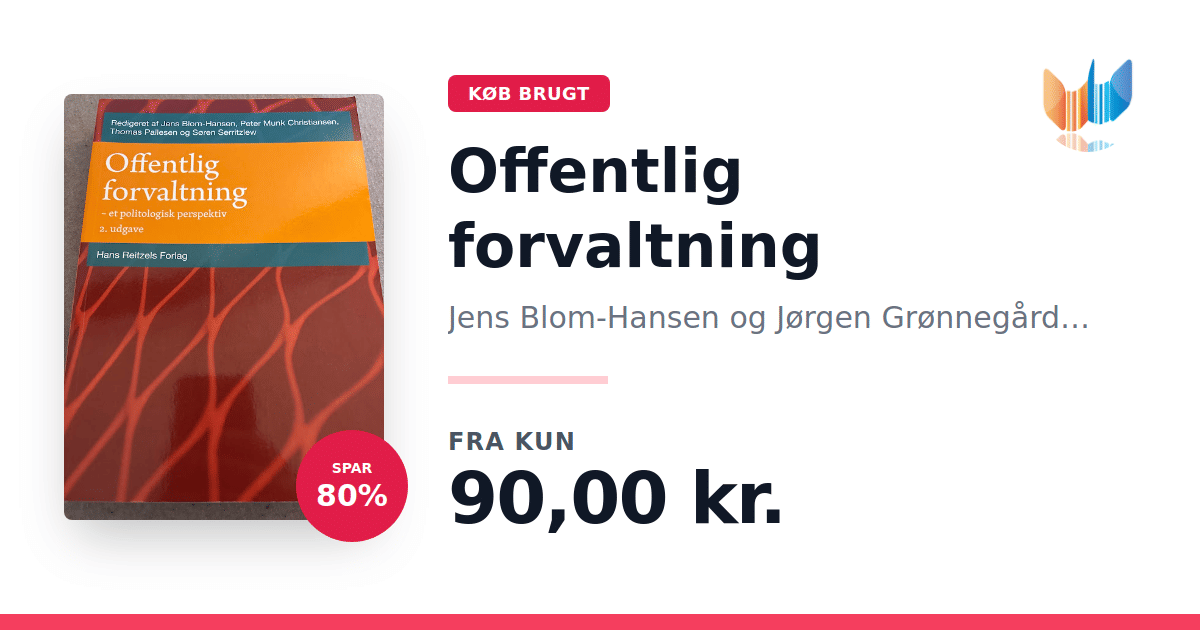 Lige nu kan du købe "Offentlig forvaltning" af Jens Blom-Hansen og Jørgen Grønnegård Christensen til kun 90,00 kr. Du sparer hele 80% af nyprisen! Bogen du ser her er brugt, og i perfekt stand. Vi har i øjeblikket 8 eksemplarer til salg af "Offentlig forvaltning", så husk at se de forskellige udgaver.