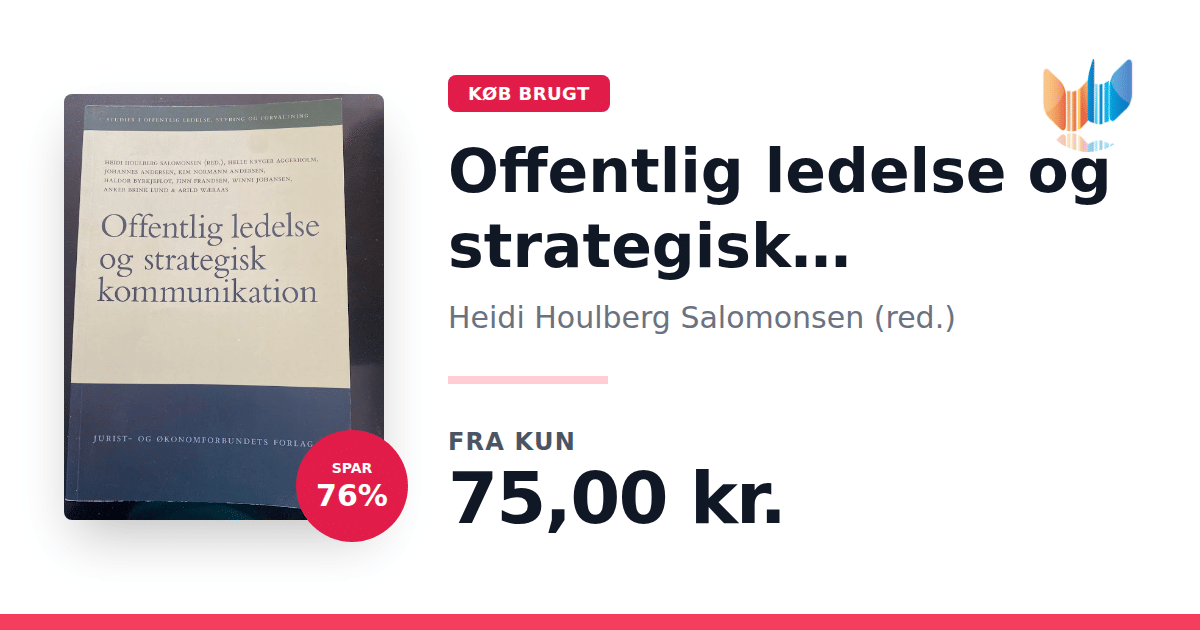I "Offentlig ledelse og strategisk kommunikation", redigeret af Heidi Houlberg Salomonsen, sættes der skarpt på den voksende betydning af strategisk kommunikation som et centralt ledelsesværktøj i den offentlige sektor. Udgivelsen fra 2013 belyser de mange facetter af emnet og sætter fokus på, hvordan offentlige ledere i stigende grad må forholde sig professionelt til deres kommunikationsopgaver. Bogen dykker ned i en række af de væsentligste ledelsesudfordringer på området. Dette gælder blandt andet interne kommunikationsprocesser i forbindelse med organisatoriske forandringer og øget digitalisering. Samtidig behandles den eksterne kommunikation, herunder håndtering af mediekontakt under kriser, samt hvordan man som leder målrettet kan arbejde strategisk med sit omdømme. En grundlæggende præmis for bogen er, at den offentlige sektor - både i selve organisationerne og i deres omgivelser - har nogle særlige kendetegn, som skaber helt specifikke betingelser. Disse vilkår påvirker i høj grad offentlige lederes håndtering af de strategiske kommunikationsprocesser. Gennem forskellige bidrag diskuteres det derfor, hvordan man bedst muligt kan oversætte og tilpasse generiske kommunikationsteorier, så de kan anvendes meningsfuldt i en offentlig sammenhæng.