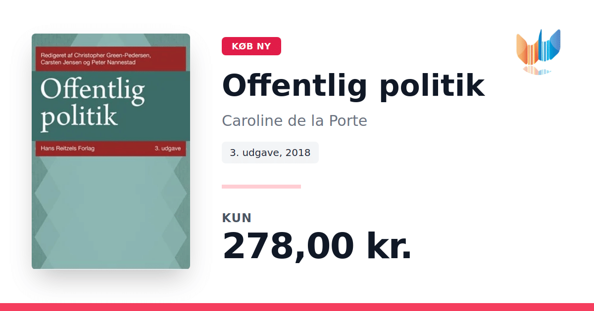 Offentlig politik giver en dybdegående introduktion til, hvordan politiske aktører udformer og implementerer deres beslutninger. Bogen præsenterer centrale policy-instrumenter og metoder til at måle og analysere de forandringer, der sker i den offentlige sektor. Med udgangspunkt i forskellige teoretiske perspektiver undersøger værket, hvorfor regeringer vælger netop bestemte politiske mål – lige fra miljøbeskyttelse og økonomisk vækst til aspekter ved velfærdsstaten og andre politiske prioriteringer. Bogen illustrerer, at virkeligheden ofte afviger fra de teoretiske modeller og kalder på en kritisk og reflekteret tilgang til politisk analyse. I sin tredje udgave, udgivet af Hans Reitzel i 2018, er Offentlig politik en uundværlig ressource for studerende og praktikere, der ønsker et solidt fundament i forståelsen af politiske processer og beslutningsmekanismer.