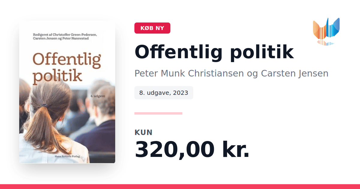 Offentlig politik dykker ned i, hvornår og hvordan politiske partier, interesseorganisationer og andre aktører forfølger og implementerer specifikke policies. Bogen understreger, at en grundig analyse af offentlig politik kræver både et solidt kendskab til eksisterende teoretiske rammer og en indsigt i, hvordan virkeligheden ofte afviger fra de teoretiske forudsigelser. Analysen af politik bliver her præsenteret som et håndværk, hvor praktisk forståelse og teoretisk viden går hånd i hånd. I den reviderede 4. udgave er stort set alle kapitler blevet nyt udformet eller betydeligt opdateret for at afspejle det moderne og fremtidige politiske landskab. Bogen fornyer klassikeren med en aktuel tilgang og et friskt perspektiv på de komplekse processer i offentlig beslutningstagning. Offentlig politik er redigeret af Christopher Green-Pedersen, Carsten Jensen og Peter Nannestad ved Institut for Statskundskab, Aarhus Universitet.