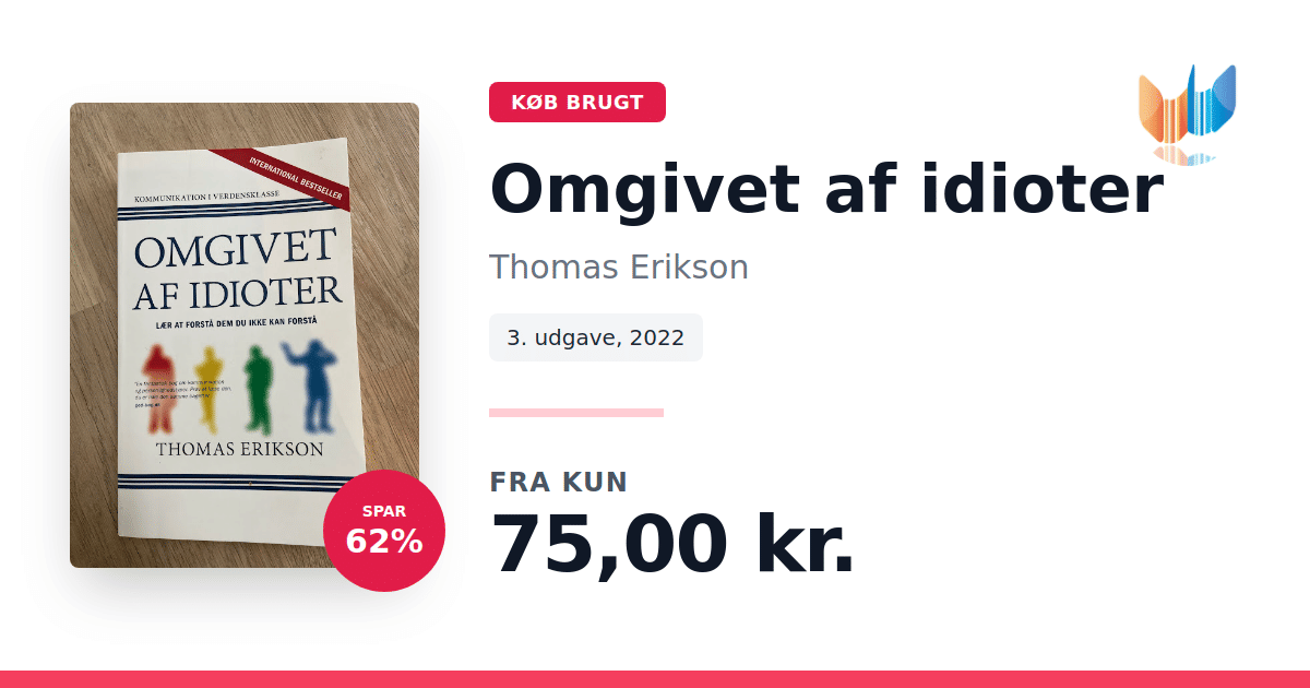 Lige nu kan du købe "Omgivet af idioter" af Thomas Erikson til kun 75,00 kr. Du sparer hele 62% af nyprisen! Bogen du ser her er brugt, og i perfekt stand. Vi har i øjeblikket kun et enkelt eksemplar til salg af "Omgivet af idioter", så slå til mens du kan!