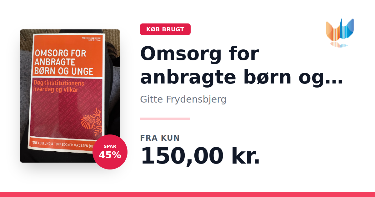 Omsorg for anbragte børn og unge er en grundig undersøgelse af, hvordan omsorgsbegrebet praktiseres i institutioner, hvor børn og unge bor. Bogen giver et nuanceret billede af, hvordan omsorg bliver tilpasset de konkrete rammer og udfordringer i hverdagen på institutioner og belyser, hvordan tryghed og forudsigelighed er afgørende for børnenes udvikling og selvstændighed. Med udgangspunkt i casestudier fra forskellige institutioner bidrager bogen med dybdegående beskrivelser af det pædagogiske arbejde. Værket henvender sig til studerende, sagsbehandlere og praktikere, som ønsker et konkret indblik i den komplekse sociale virkelighed, der karakteriserer livet for anbragte børn og unge.