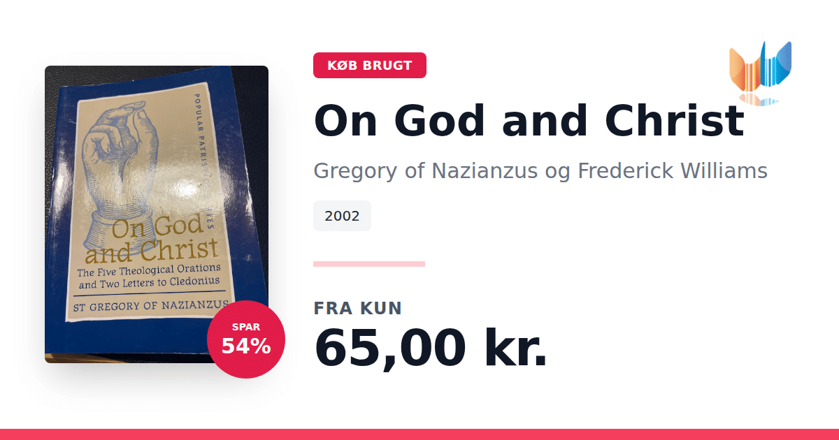 Lige nu kan du købe "On God and Christ" af Gregory of Nazianzus og Frederick Williams til kun 65,00 kr. Du sparer hele 54% af nyprisen! Bogen du ser her er brugt, og i god stand. Vi har i øjeblikket kun et enkelt eksemplar til salg af "On God and Christ", så slå til mens du kan!