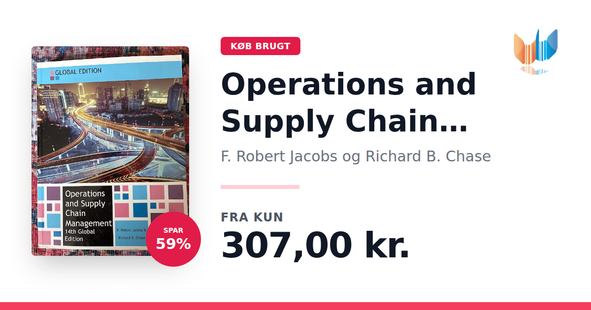 Lige nu kan du købe "Operations and Supply Chain Management" af F. Robert Jacobs og Richard B. Chase til kun 307,00 kr. Du sparer hele 59% af nyprisen! Bogen du ser her er brugt, og i perfekt stand. Vi har i øjeblikket kun et enkelt eksemplar til salg af "Operations and Supply Chain Management", så slå til mens du kan!