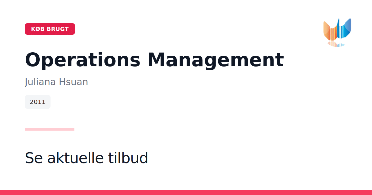 Operations Management er allestedsnærværende og uundværlig i alle brancher. Med nutidige og vedkommende eksempler formår Juliana Hsuan at levendegøre grundlæggende principper og teorier inden for driftstyring. Bogen belyser både produktions- og serviceorienterede miljøer og afspejler de nyeste trends og udviklinger i feltet. Et uundværligt værk for studerende og praktikere, der ønsker et solidt fundament i Operations Management.