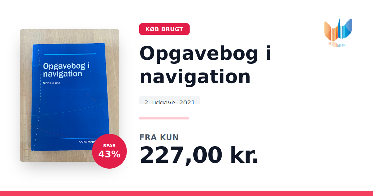Lige nu kan du købe "Opgavebog i navigation" til kun 227,00 kr. Du sparer hele 43% af nyprisen! Bogen du ser her er brugt, og i perfekt stand. Vi har i øjeblikket kun et enkelt eksemplar til salg af "Opgavebog i navigation", så slå til mens du kan!