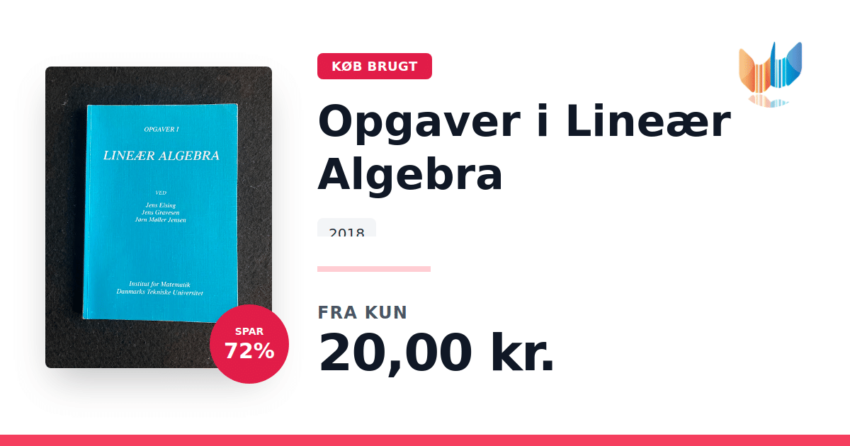 Lige nu kan du købe "Opgaver i Lineær Algebra" til kun 20,00 kr. Du sparer hele 72% af nyprisen! Bogen du ser her er brugt, og i god stand. Vi har i øjeblikket kun et enkelt eksemplar til salg af "Opgaver i Lineær Algebra", så slå til mens du kan!