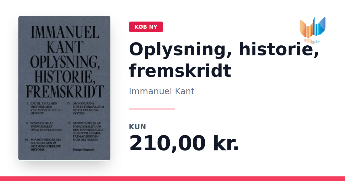 Lige nu kan du købe "Oplysning, historie, fremskridt" af Immanuel Kant til kun 210,00 kr. Bogen du ser her er ny, og kan købe gennem vores partner Plusbog.