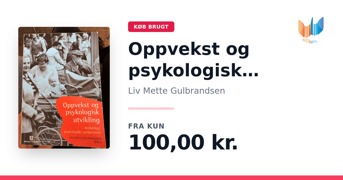 Lige nu kan du købe "Oppvekst og psykologisk utvikling" af Liv Mette Gulbrandsen til kun 100,00 kr. Bogen du ser her er brugt, og i god stand. Vi har i øjeblikket kun et enkelt eksemplar til salg af "Oppvekst og psykologisk utvikling", så slå til mens du kan!