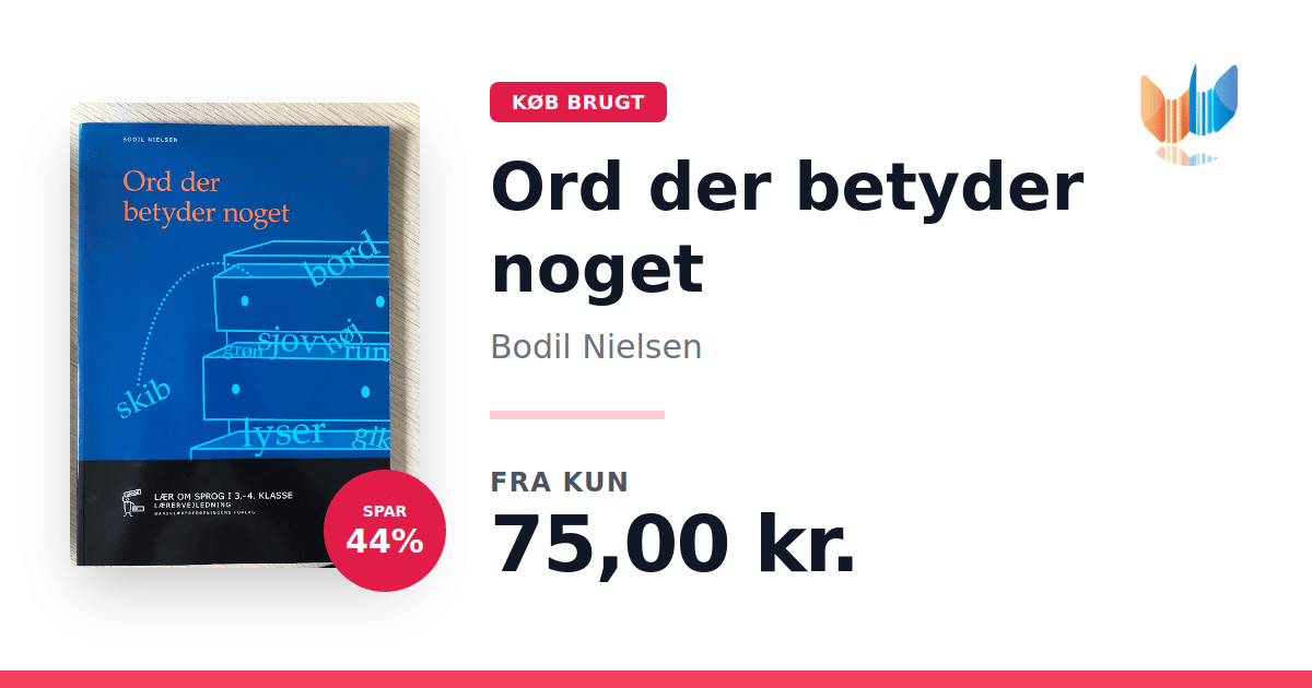 Lige nu kan du købe "Ord der betyder noget" af Bodil Nielsen til kun 75,00 kr. Du sparer hele 44% af nyprisen! Bogen du ser her er brugt, og i perfekt stand. Vi har i øjeblikket 2 eksemplarer til salg af "Ord der betyder noget", så husk at se de forskellige udgaver.