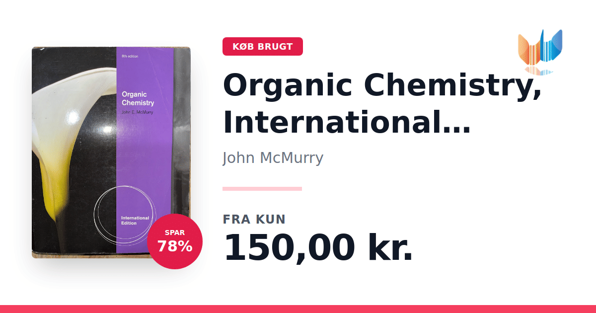Lige nu kan du købe "Organic Chemistry, International Edition" af John McMurry til kun 150,00 kr. Du sparer hele 78% af nyprisen! Bogen du ser her er brugt, og i perfekt stand. Vi har i øjeblikket kun et enkelt eksemplar til salg af "Organic Chemistry, International Edition", så slå til mens du kan!