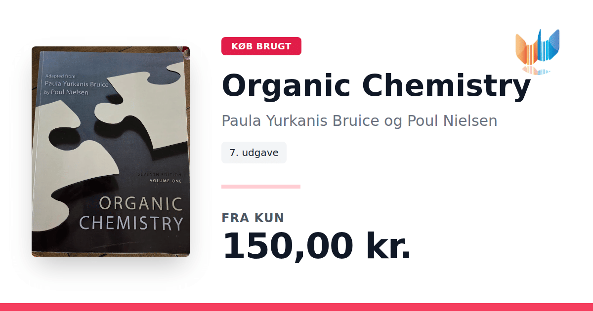 Lige nu kan du købe "Organic Chemistry" af Paula Yurkanis Bruice og Poul Nielsen til kun 150,00 kr. Bogen du ser her er brugt, og i perfekt stand. Vi har i øjeblikket 2 eksemplarer til salg af "Organic Chemistry", så husk at se de forskellige udgaver.