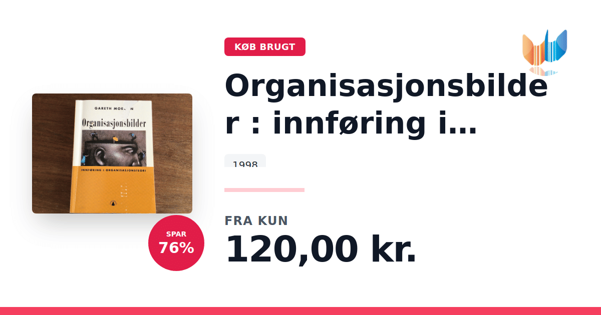 Lige nu kan du købe "Organisasjonsbilder : innføring i organisasjonsteori" til kun 120,00 kr. Du sparer hele 77% af nyprisen! Bogen du ser her er brugt, og i god stand. Vi har i øjeblikket kun et enkelt eksemplar til salg af "Organisasjonsbilder : innføring i organisasjonsteori", så slå til mens du kan!