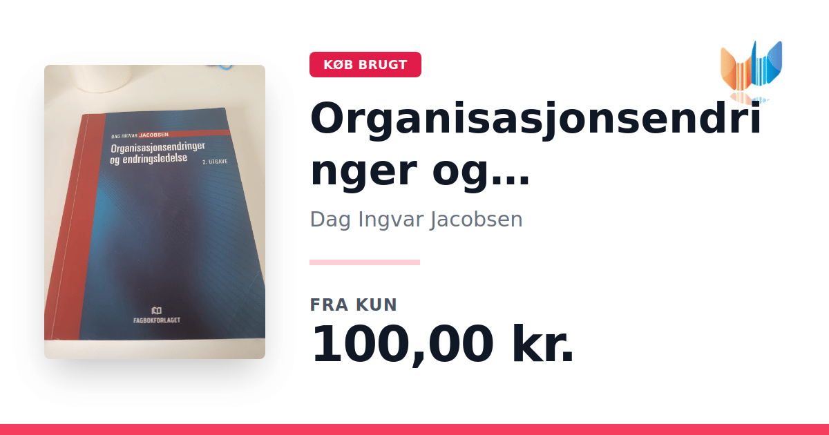 Lige nu kan du købe "Organisasjonsendringer og endringsledelse" af Dag Ingvar Jacobsen til kun 100,00 kr. Bogen du ser her er brugt, og i god stand. Vi har i øjeblikket kun et enkelt eksemplar til salg af "Organisasjonsendringer og endringsledelse", så slå til mens du kan!
