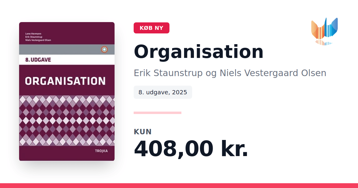 En klassiker inden for organisationsfaget Med en lang tradition på videregående uddannelser, især akademiuddannelser, har Organisation - Lærebog 8. udgave været med til at belyse og forny faget gennem teori, modeller og konkrete eksempler. Denne ottende udgave bygger videre på de tidligere udgaver og er opdateret i overensstemmelse med de krav, der stilles til organisationsfaget i dag. Bogen er opdelt i seks gennemarbejdede dele, hvor hver del favner centrale temaer inden for organisation. Denne struktur skaber et klart overblik og gør det nemt at navigere mellem fagområder som struktur, kultur, ledelse og beslutningsprocesser. Faget organisation er i konstant forandring, og 8. udgave er tilpasset denne udvikling med nye kapitler om AI - generativ kunstig intelligens samt bæredygtighed set i en organisatorisk sammenhæng. Disse temaer afspejler de aktuelle udfordringer og muligheder, organisationer står over for. Der er også tilføjet et længe efterspurgt kapitel om psykisk arbejdsmiljø, og afsnittene om styring og ledelse samt indflydelse og magt er væsentligt udbygget. Målet er at sætte fokus på, hvordan disse faktorer former den daglige drift og strategiske udvikling i organisationer. Beskrivelsen af organisatoriske opbygninger videreudvikler den klassiske organisationsforståelse med et udvidet blik på fleksible organisationsformer og virtuelle organisationer - netop de former, der præger mange virksomheder og institutioner i dag. Med Organisation - Lærebog 8. udgave introduceres også Trojka Universet, et digitalt miljø bestående af en dedikeret website og en mobil app, der supplerer bogens indhold med interaktive øvelser og cases.
