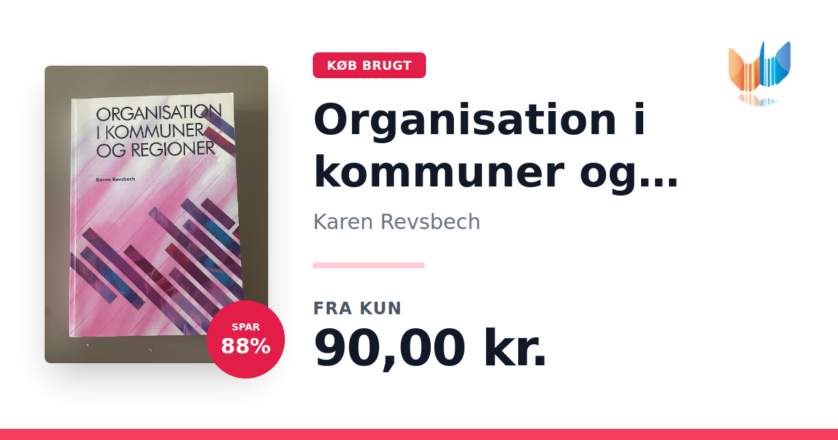 Lige nu kan du købe "Organisation i kommuner og regioner" af Karen Revsbech til kun 90,00 kr. Du sparer hele 88% af nyprisen! Bogen du ser her er brugt, og i perfekt stand. Vi har i øjeblikket kun et enkelt eksemplar til salg af "Organisation i kommuner og regioner", så slå til mens du kan!