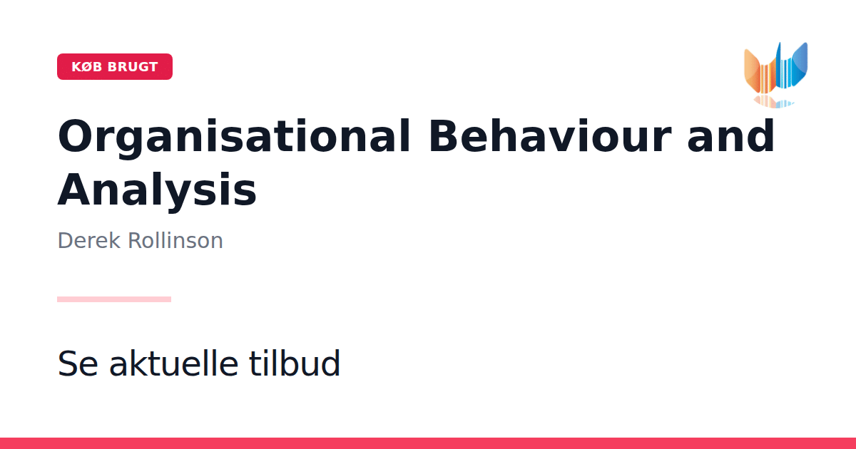 Organisational Behaviour and Analysis: An Integrated Approach byder på en omfattende introduktion til organisationsadfærd og -analyse med et klart psykologisk perspektiv. I stedet for at fokusere på kontrol og ledelsesredskaber understreger bogen forståelsen af menneskelig adfærd i organisationer som et neutralt og undersøgende felt. Bogen henvender sig til studerende på både bachelor- og kandidatniveau samt til dem, der forbereder sig til professionelle kvalifikationer i organisationsadfærd. Dens fleksible struktur gør den velegnet som grundbog på indledende kurser samt som referenceværk i videregående studier. Et righoldt udvalg af cases - mange hentet fra Financial Times - understøtter teorierne og hjælper læseren med at sætte akademiske begreber ind i en praktisk kontekst. Øvelser og diskussionsspørgsmål stimulerer kritisk refleksion over såvel teori som praksis. Til hvert kapitel følger en uddybende case study på bogens website, hvor interaktive spørgsmål til selvvurdering og anbefalinger til videre læsning giver mulighed for at uddybe og konsolidere indsigt.