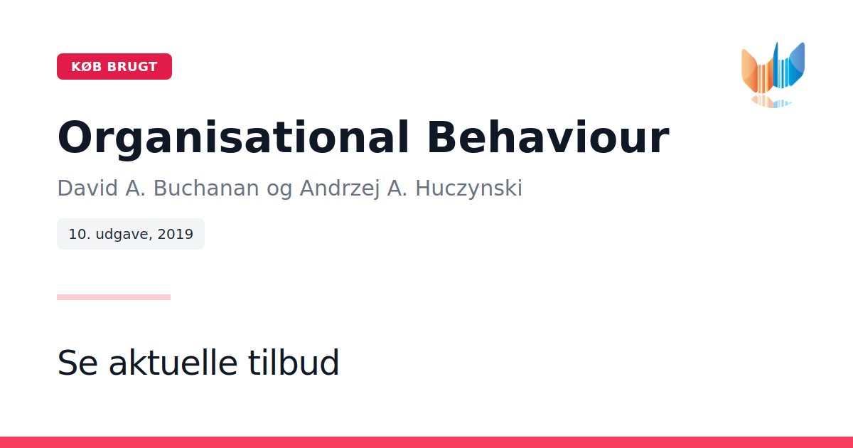 Hvis du er studerende eller professionel uden et grundigt kendskab til samfundsvidenskab og ønsker en engagerende introduktion til organisationsadfærd, er Organisational Behaviour, 10. udgave af David A. Buchanan og Andrzej A. Huczynski, det oplagte valg. Bogen er velkendt for sit tilgængelige sprog og inviterer dig til at udforske organisationer gennem dine egne dagligdagserfaringer frem for kun traditionelle akademiske kilder. Gennem 872 sider guider forfatterne dig fra analyser af organisationsmiljøer og menneskelig adfærd til studier af personlighed og kommunikation. Du lærer om enkeltindividers rolle i grupper, principperne bag effektiv teamdynamik og får indsigt i, hvordan organisationskultur påvirker medarbejderes motivation og præstation. Teksten blander teoretiske sociale videnskabsantagelser med praksiseksempler og bruger filmklip som case-studier til at belyse aktuelle problemstillinger. Den nyskabende struktur gør det nemt at koble teori og virkelighed, så du kan omsætte viden direkte i dine studier eller i jobbet. I denne 10. udgave er der tilføjet links til korte podcasts og onlinevideoer samt opsummerede oversigter over nyere centrale forskningsresultater. Derudover præsenteres nyt indhold om den agile organisation og kvinders personlighedstræk i lederskab, suppleret af en række case-studier fra førende virksomheder. Med øvelser, refleksionsspørgsmål og omfattende referencer giver Organisational Behaviour dig de teoretiske redskaber og den kritiske forståelse, der er nødvendig for at analysere organisatoriske fænomener. Uanset om du læser på bachelor-, kandidat- eller professionsniveau, vil du få et solidt fundament i feltets centrale teorier og principper.