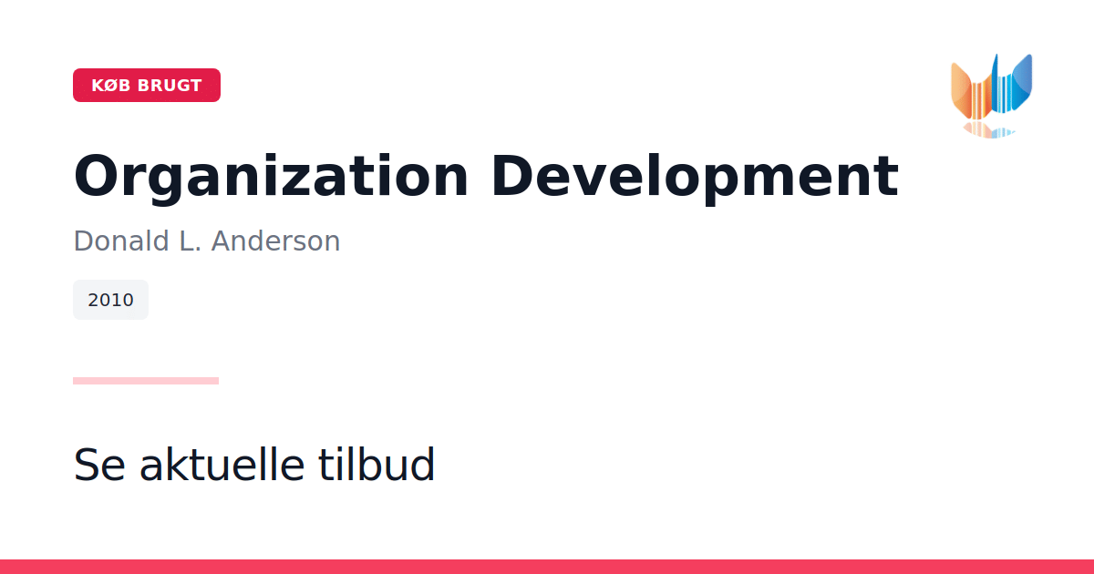 Organisation Development: The Process of Leading Organizational Change fra 2010, skrevet af Donald L. Anderson og udgivet af SAGE, giver et dybtgående indblik i organisationsudviklingsprocesser. Bogen samler de nyeste forskningsresultater inden for interventionsstrategier og den konsulterende rolle. Med fokus på både teoretiske modeller og praktiske anvendelser tydeliggør Anderson, hvordan man systematisk kan lede forandringsprojekter. Med 385 sider i paperback præsenterer værket en række case-studier og praktiske øvelser, der hjælper studerende og praktikere med at omsætte teori til praksis. Hver øvelse er designet til at styrke forståelsen af de dynamikker, der opstår under forandringsindsatser. Bogen fungerer som et samlet værk, der kan integreres direkte i undervisning eller anvendes som reference i professionelle udviklingsprojekter.