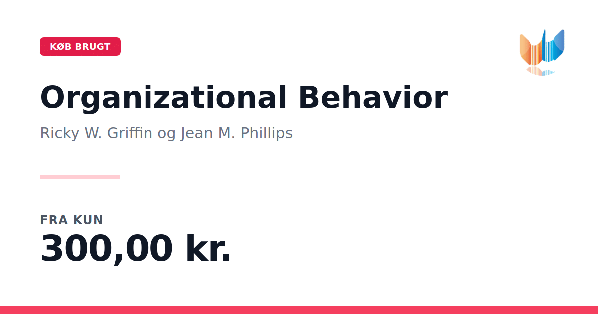 Lige nu kan du købe "Organizational Behavior" af Ricky W. Griffin og Jean M. Phillips til kun 300,00 kr. Bogen du ser her er brugt, og i perfekt stand. Vi har i øjeblikket 4 eksemplarer til salg af "Organizational Behavior", så husk at se de forskellige udgaver.
