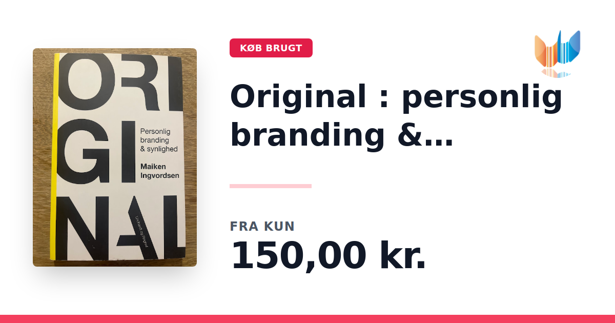 Lige nu kan du købe "Original : personlig branding & synlighed" til kun 150,00 kr. Bogen du ser her er brugt, og i perfekt stand. Vi har i øjeblikket kun et enkelt eksemplar til salg af "Original : personlig branding & synlighed", så slå til mens du kan!