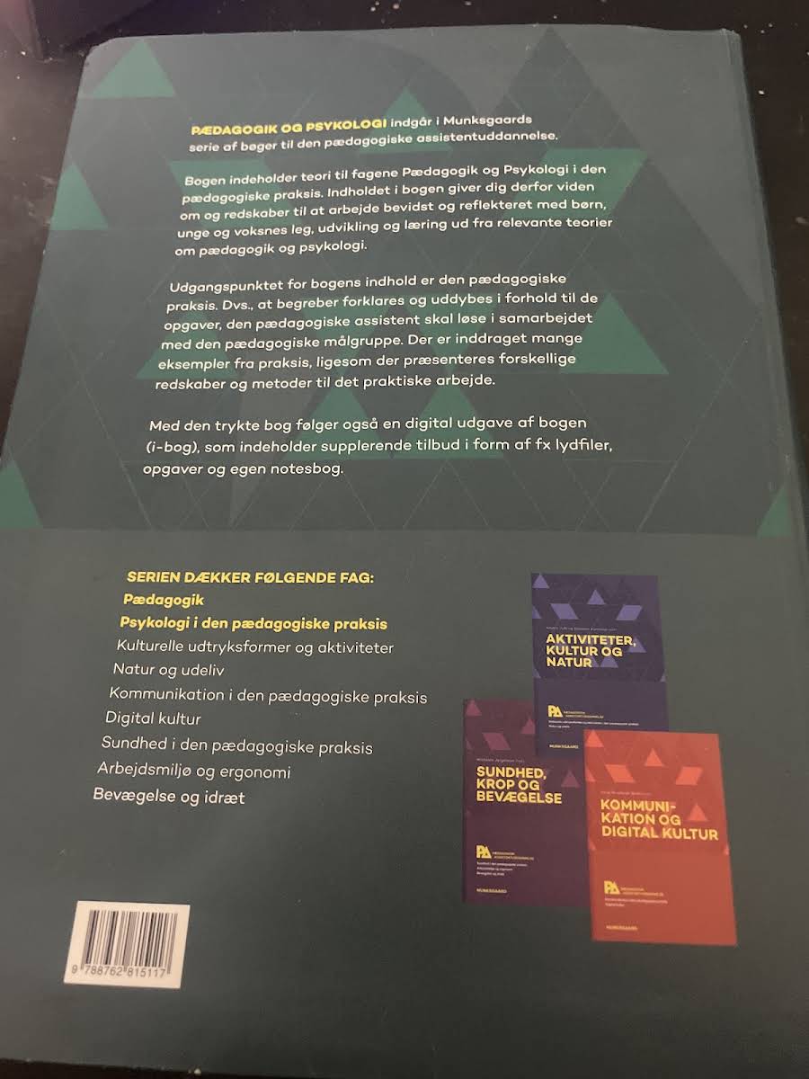 "Pædagogik og psykologi. Pædagogisk assistent (med iBog)" er en grundbog, der er skræddersyet til dig, som læser til pædagogisk assistent. Bogen giver en grundig indføring i de væsentlige teorier og begreber inden for pædagogik og psykologi, så du er godt rustet til uddannelsens faglige krav og den praktiske indsats i den pædagogiske praksis. Med et indhold, der spænder fra klassiske teorier til nyere metodiske tilgange, illustreres de teoretiske emner løbende med relevante eksempler fra praksis. Dette gør det nemmere for dig at omsætte teoretisk viden til konkrete redskaber til dit daglige arbejde med målgruppen. Bogen er udarbejdet af en stærk forfattergruppe bestående af Jesper Larsen, Trine Reinholdt Gath, Maria Månsson, Christina Munkholm, Conny Abelskov, Mia Pierri Naumann, Sofie Qvortrup og Signe Emig. Sammen sikrer de, at du får både et solidt fagligt fundament og praktisk inspiration til de mange opgaver, du vil møde som pædagogisk assistent. Som en ekstra ressource indeholder bogen en digital udgave (iBog) med supplerende materiale, herunder lydfiler, film og opgaver. Dette digitale indhold understøtter din læring og giver dig mulighed for at dykke endnu dybere ned i emnerne, så du når godt i mål med dine studier.