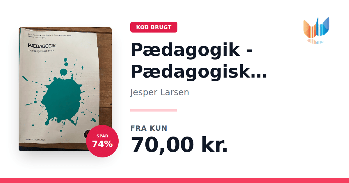Lige nu kan du købe "Pædagogik - Pædagogisk assistent" af Jesper Larsen til kun 70,00 kr. Du sparer hele 74% af nyprisen! Bogen du ser her er brugt, og i god stand. Vi har i øjeblikket kun et enkelt eksemplar til salg af "Pædagogik - Pædagogisk assistent", så slå til mens du kan!