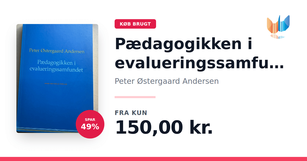 Lige nu kan du købe "Pædagogikken i evalueringssamfundet" af Peter Østergaard Andersen til kun 150,00 kr. Du sparer hele 49% af nyprisen! Bogen du ser her er brugt, og i perfekt stand. Vi har i øjeblikket kun et enkelt eksemplar til salg af "Pædagogikken i evalueringssamfundet", så slå til mens du kan!