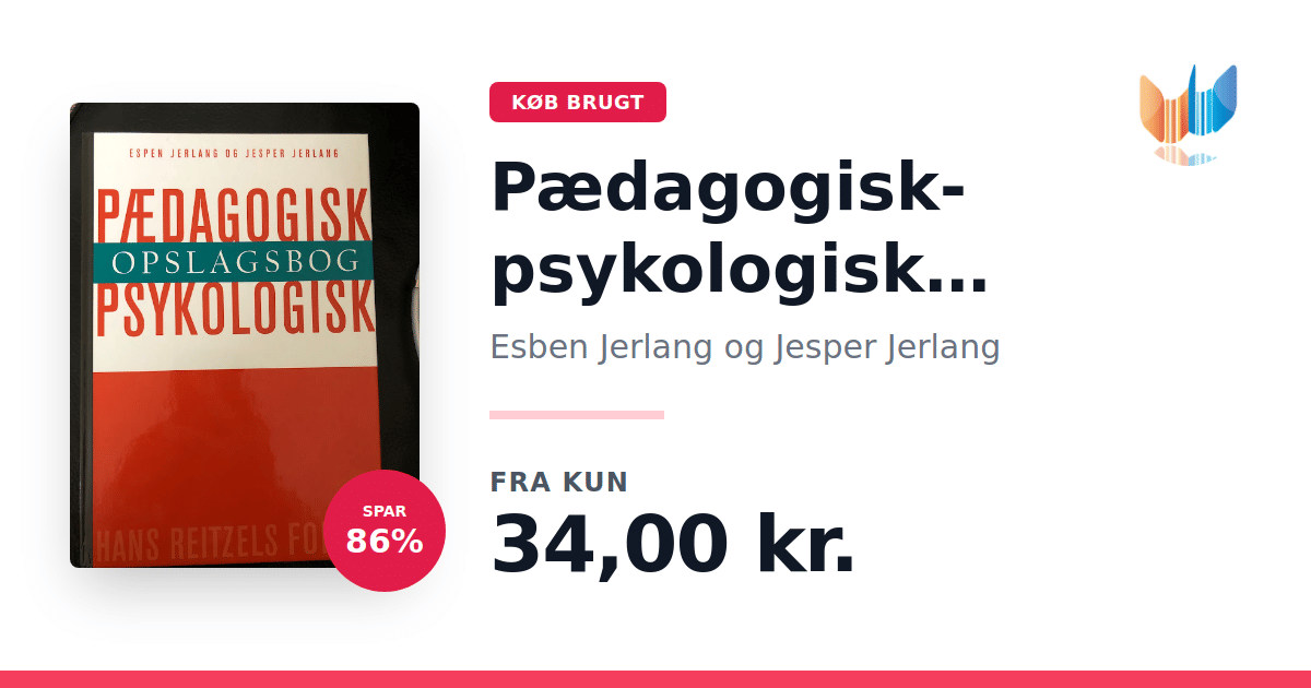 Lige nu kan du købe "Pædagogisk-psykologisk opslagsbog" af Esben Jerlang og Jesper Jerlang til kun 34,00 kr. Du sparer hele 86% af nyprisen! Bogen du ser her er brugt, og i perfekt stand. Vi har i øjeblikket 2 eksemplarer til salg af "Pædagogisk-psykologisk opslagsbog", så husk at se de forskellige udgaver.
