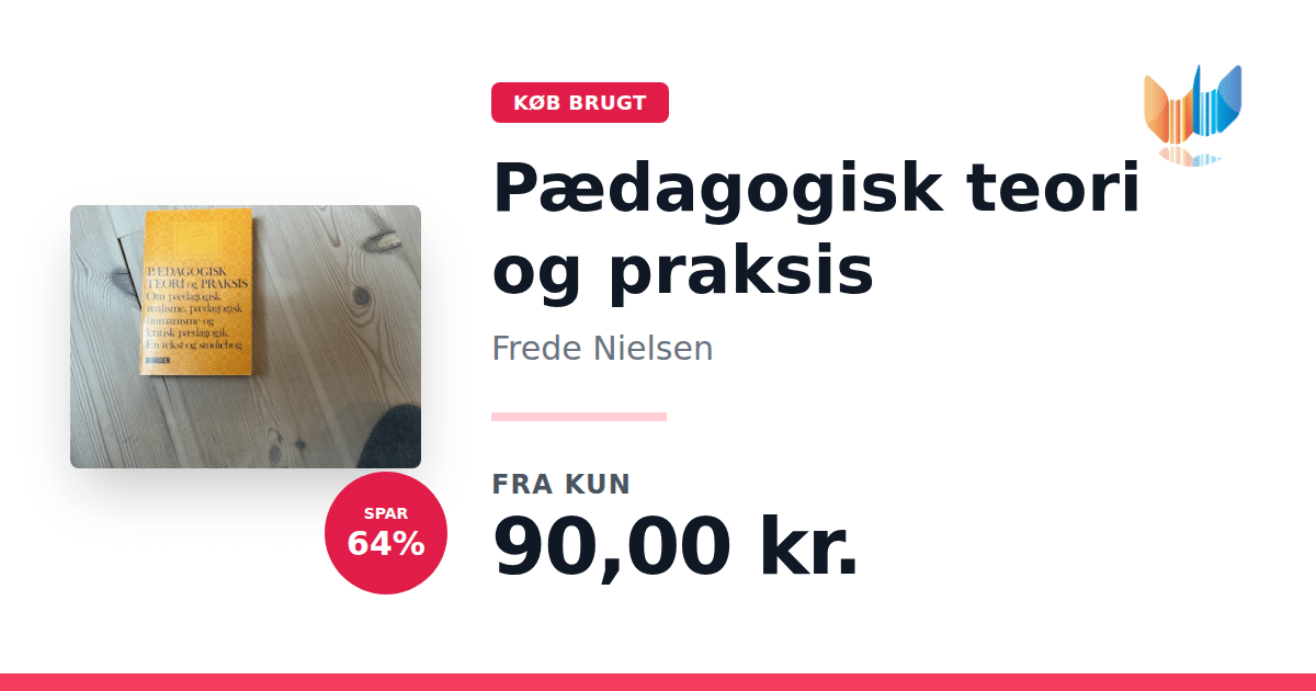 Lige nu kan du købe "Pædagogisk teori og praksis" af Frede Nielsen til kun 90,00 kr. Du sparer hele 64% af nyprisen! Bogen du ser her er brugt, og i perfekt stand. Vi har i øjeblikket kun et enkelt eksemplar til salg af "Pædagogisk teori og praksis", så slå til mens du kan!