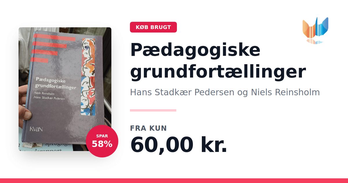 Lige nu kan du købe "Pædagogiske grundfortællinger" af Hans Stadkær Pedersen og Niels Reinsholm til kun 60,00 kr. Du sparer hele 58% af nyprisen! Bogen du ser her er brugt, og i perfekt stand. Vi har i øjeblikket 5 eksemplarer til salg af "Pædagogiske grundfortællinger", så husk at se de forskellige udgaver.