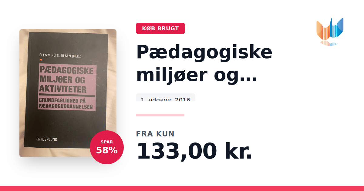 Lige nu kan du købe "Pædagogiske miljøer og aktiviteter" til kun 133,00 kr. Du sparer hele 58% af nyprisen! Bogen du ser her er brugt, og i perfekt stand. Vi har i øjeblikket kun et enkelt eksemplar til salg af "Pædagogiske miljøer og aktiviteter", så slå til mens du kan!