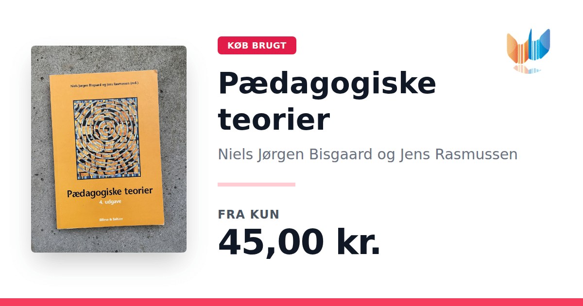 Lige nu kan du købe "Pædagogiske teorier" af Niels Jørgen Bisgaard og Jens Rasmussen til kun 45,00 kr. Bogen du ser her er brugt, og i perfekt stand. Vi har i øjeblikket 7 eksemplarer til salg af "Pædagogiske teorier", så husk at se de forskellige udgaver.