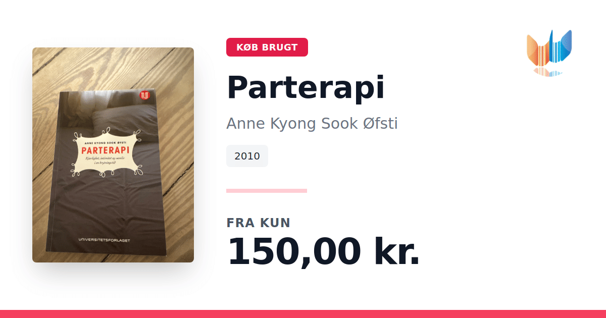 Lige nu kan du købe "Parterapi" af Anne Kyong Sook Øfsti til kun 150,00 kr. Bogen du ser her er brugt, og i perfekt stand. Vi har i øjeblikket kun et enkelt eksemplar til salg af "Parterapi", så slå til mens du kan!