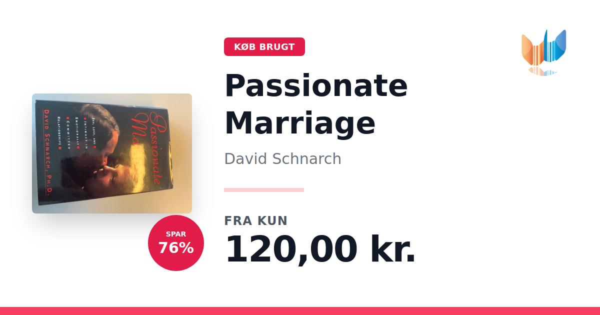 Lige nu kan du købe "Passionate Marriage" af David Schnarch til kun 120,00 kr. Du sparer hele 77% af nyprisen! Bogen du ser her er brugt, og i god stand. Vi har i øjeblikket kun et enkelt eksemplar til salg af "Passionate Marriage", så slå til mens du kan!