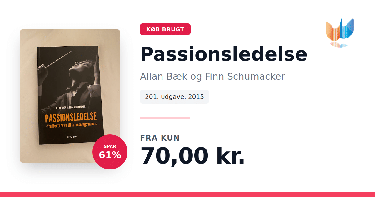 Lige nu kan du købe "Passionsledelse" af Allan Bæk og Finn Schumacker til kun 70,00 kr. Du sparer hele 61% af nyprisen! Bogen du ser her er brugt, og i perfekt stand. Vi har i øjeblikket kun et enkelt eksemplar til salg af "Passionsledelse", så slå til mens du kan!