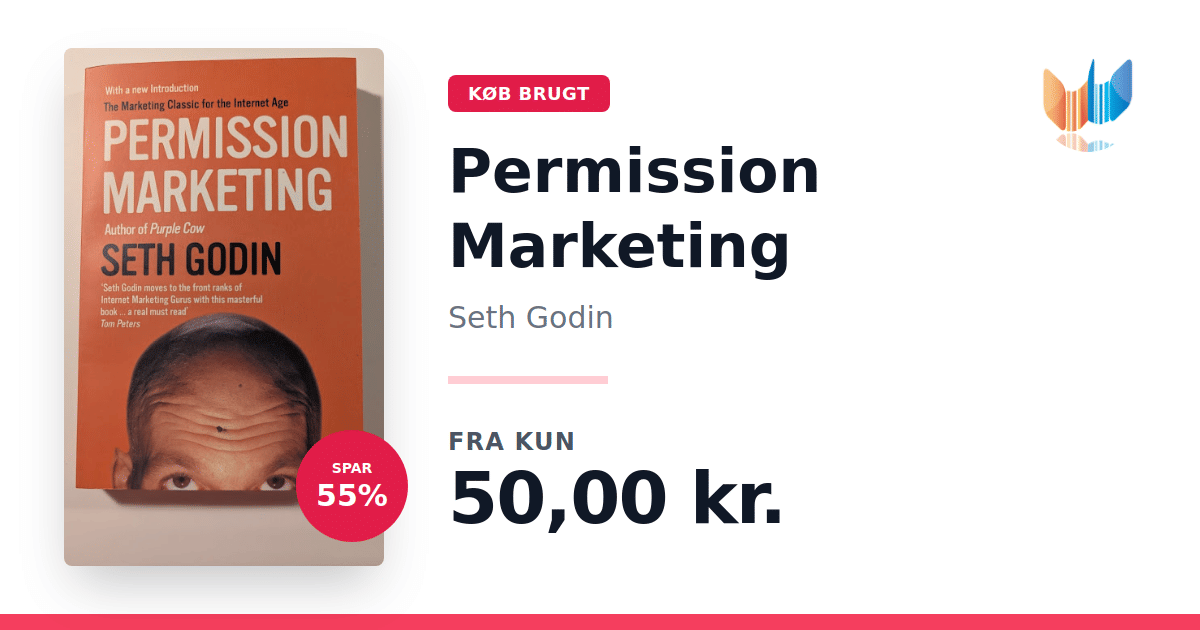 Lige nu kan du købe "Permission Marketing" af Seth Godin til kun 50,00 kr. Du sparer hele 55% af nyprisen! Bogen du ser her er brugt, og i perfekt stand. Vi har i øjeblikket kun et enkelt eksemplar til salg af "Permission Marketing", så slå til mens du kan!