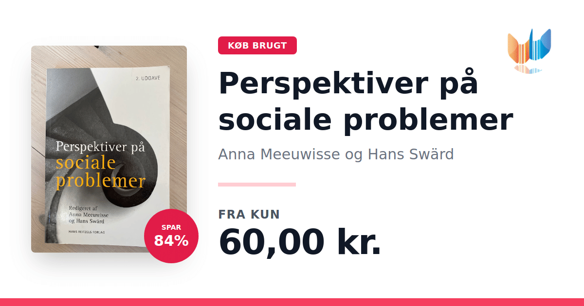 Lige nu kan du købe "Perspektiver på sociale problemer" af Anna Meeuwisse og Hans Swärd til kun 60,00 kr. Du sparer hele 84% af nyprisen! Bogen du ser her er brugt, og i perfekt stand. Vi har i øjeblikket 3 eksemplarer til salg af "Perspektiver på sociale problemer", så husk at se de forskellige udgaver.