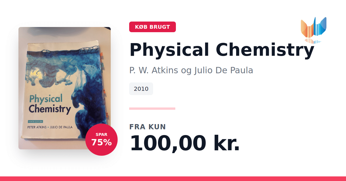Lige nu kan du købe "Physical Chemistry" af P. W. Atkins og Julio De Paula til kun 100,00 kr. Du sparer hele 75% af nyprisen! Bogen du ser her er brugt, og i god stand. Vi har i øjeblikket kun et enkelt eksemplar til salg af "Physical Chemistry", så slå til mens du kan!